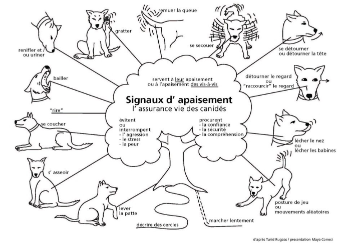 Ces signaux permettent au chien d’informer son interlocuteur (congénère ou humain)